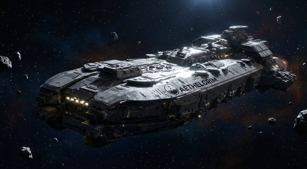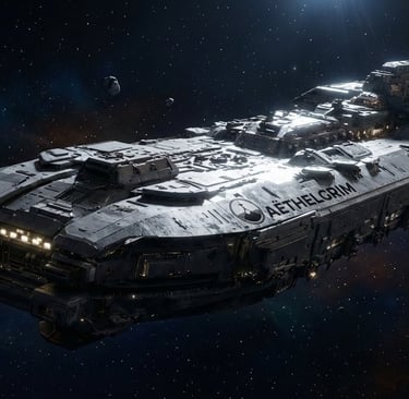 AËTHELGRIM is the first mobile god of the Aragos fleet. Designed and commissioned before most secondary hulls, it establishes the combat doctrine all other capital ships inherit: deliberate movement, overwhelming forward firepower, and survivability through layered redundancy.
